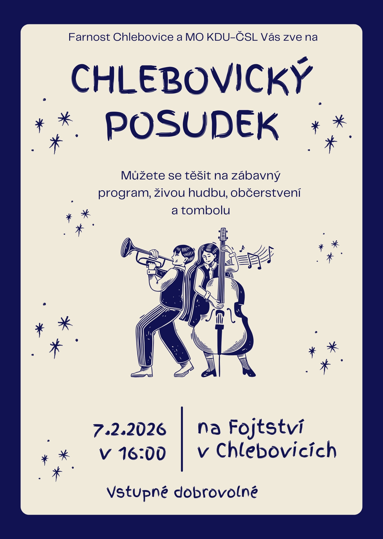 Přijměte srdečné pozvání na Chlebovický posudek, který se koná v sobotu 7.2.2026 od 16.00 hod. na Fojtství v Chlebovicích.